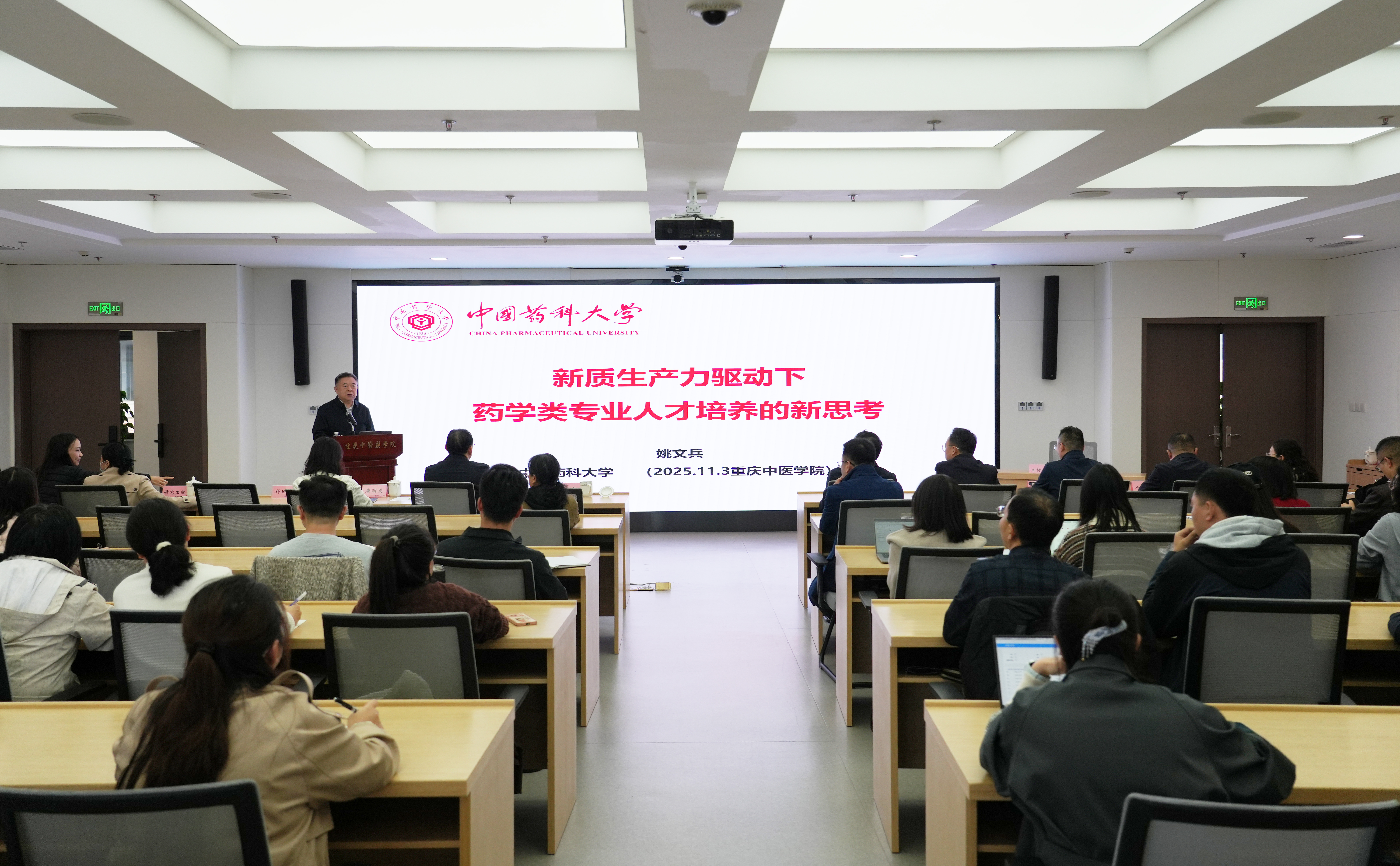▲姚文兵教授作《新质生产力驱动下药学类专业人才培养的新思考》专题讲座
