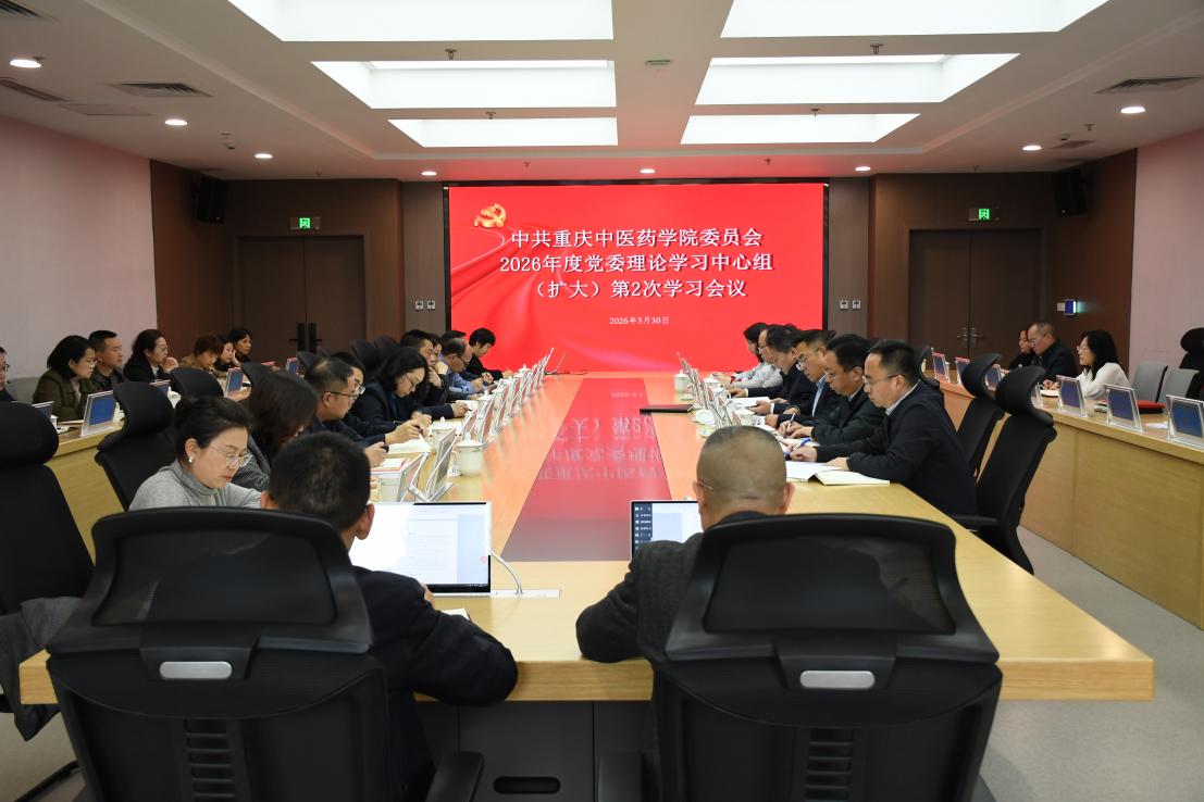 3月30日,我院召开2026年度党委理论学习中心组(扩大)第2次学习会议,学院党委书记、院长王勇德,党委副书记潘传波等全体校领导,各职能部门以及二级学院党组织负责人参加会议。