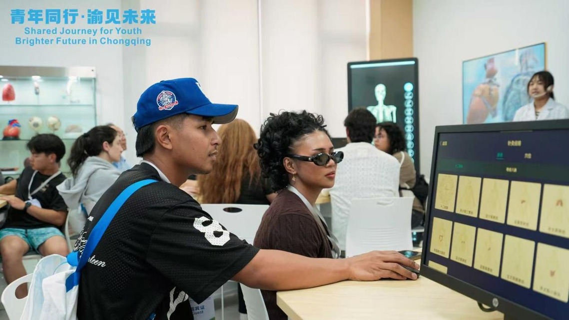 走进基础医学院的数字化实验室,这群来自加州大学、德克萨斯大学等高校的年轻人立刻围了上去。面前的仪器大屏上,舌象被高清放大,脉象化作跳动的波形——这是中医药与现代科技结合的成果,将传统的“望闻问切”转化为可视化数据。青年直言们“没想到中医药如此硬核”。