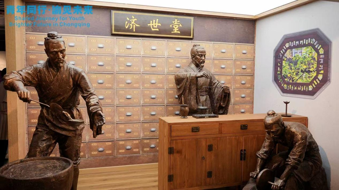 4月9日下午,重庆中医药学院的校园里飘出一股淡淡的草药香。刚刚体验完气势磅礴的铜梁龙舞的美国青年们,此刻正安静地围在桌前,亲手制作他们人生中第一个中药香包。这里没有高谈阔论,只有艾草的清香、数字荧幕上的舌象图谱,以及一套流传了八百年的“广播体操”——八段锦。