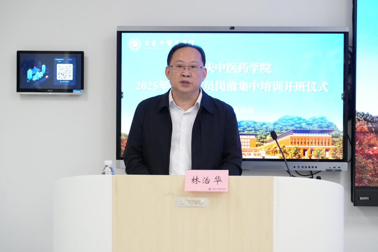 林治华代表学院向新入职的教职工致以热烈欢迎和衷心祝贺,并提出了三点要求:第一,珍惜学习机会,做到学有所获。培训中要认真听、仔细记、深入思,把师德师风的价值标准、纪律规矩的底线要求、业务工作的实操方法学深悟透。第二,严守纪律要求,做到行有所规。遵守考勤制度、课堂纪律与学员守则,共同维护良好的培训秩序,展现良好风貌。第三,践行责任使命,做到干有所为。将培训所学与中医药事业发展需求、学院建设目标相结合,早日成长为符合“四个统一”要求的合格人才,为学院发展与重庆中医药事业振兴贡献力量。