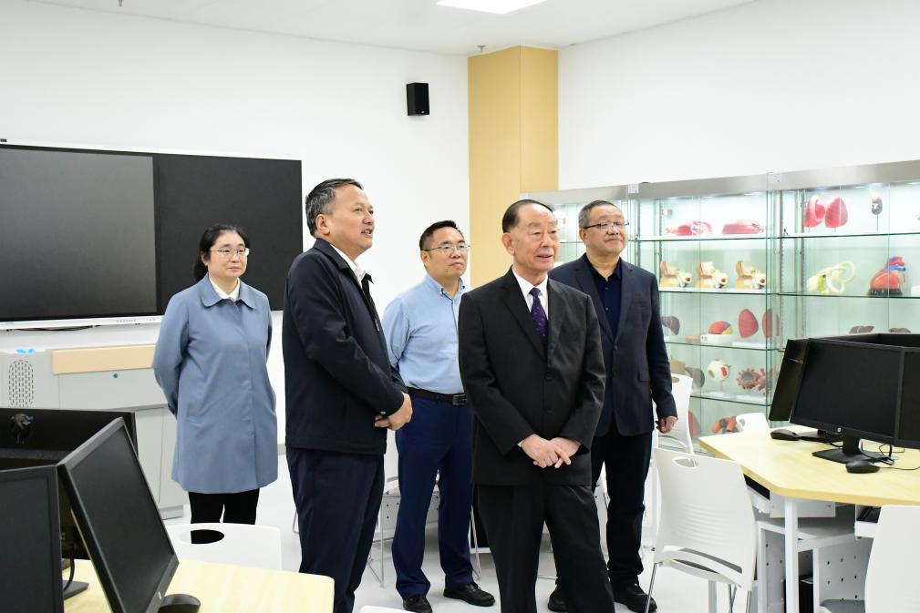 唐祖宣、童安荣一行实地参观了我院基础医学院数字化实验室、解剖实验室以及中医药文化馆等地,深入了解我院的教学设施与科研环境。调研中,王勇德向两位专家详细介绍了我院的建校历程、学科建设布局、人才培养模式以及未来发展规划。