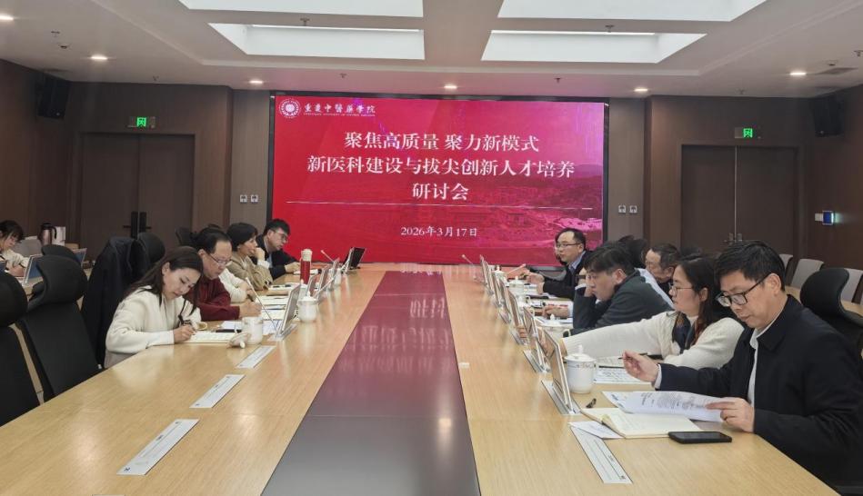 3月17日,我院围绕“聚焦高质量 聚力新模式”主题,召开新医科建设与拔尖创新人才培养研讨会。来自重庆市教育委员会高等教育处、重庆大学本科生院、西南大学创新创业学院有关负责人及西南政法大学、重庆医科大学、重庆交通大学、四川外国语大学教务处有关负责人等应邀参加。我院副院长林治华出席并讲话,学院有关职能部门、二级学院负责人参加。