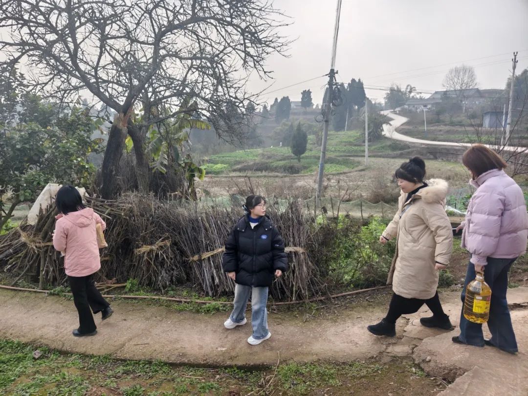 此次慰问活动由护理学院副院长胡琛带队,学办主任张成贤,辅导员张诗懿,以及班主任任柳、黄雨萱共同参与。老师们一起走访慰问位于重庆綦江、荣昌的两户学生家庭,以暖心慰问物资、和家里人亲切“唠家常”,于寒冬中献上浓浓的温暖。