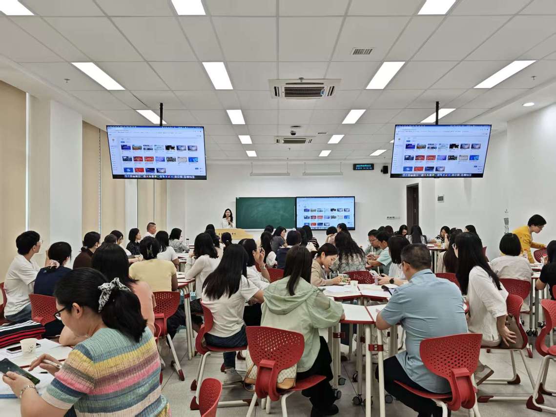 会上,超星智慧教学平台工作人员王婵系统介绍了平台的基础使用功能和AI辅助教学的操作实践。在讨论环节,教师们就AI智能体的创建模式、特色课程资源适配等实际问题进行了深入探讨,现场气氛热烈。