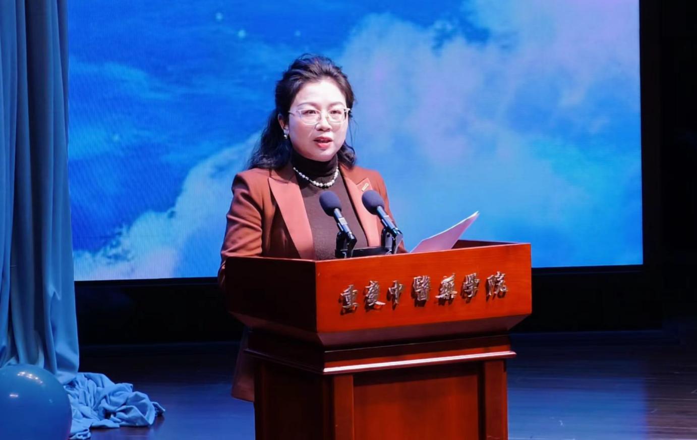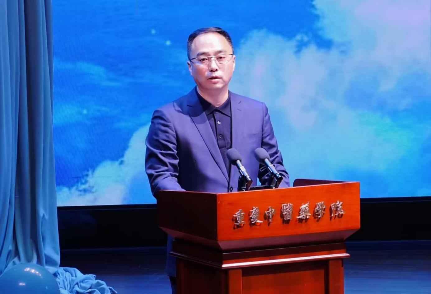 晚会伊始,重庆中医药学院党委常委、纪委书记唐樵书记登台致辞,他寄语教师以“明德济世、精术泽人”的校训为指引,要做授业解惑的“大先生”,勉励学生要做“追梦人”,珍惜时代机遇与优质资源,将个人成长融入国家健康事业,以仁心仁术书写青春华章。