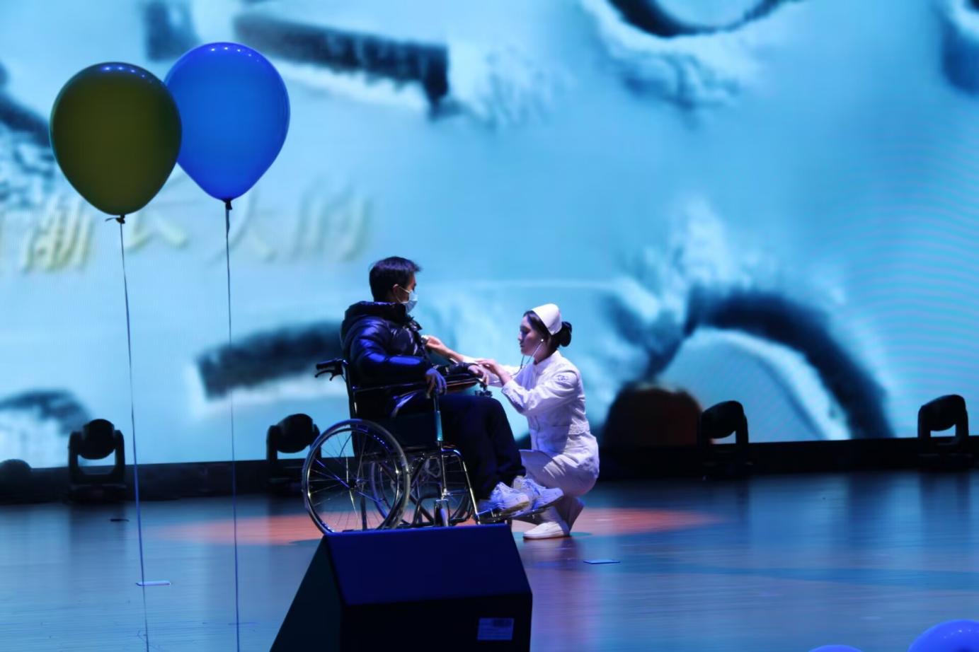 独唱《世界赠予我的》:以护士照顾病人的剧情演绎为特色,舒缓的歌声搭配温情的舞台场景,细腻描摹出护理工作者的坚守与温暖,让观众在旋律中感受到平凡岗位上的不凡力量。
