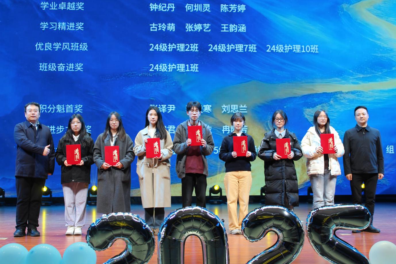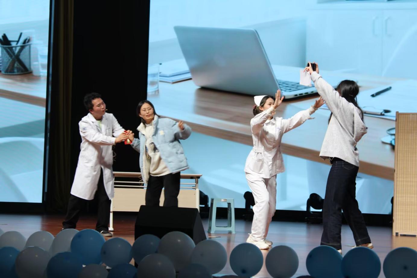 更多精彩:活动现场还举行了优秀教师与学生的颁奖仪式,护理学院获奖师生代表依次登台接受表彰,这既是对他们过去一年努力的肯定,也为新生树立了身边的学习榜样。紧接着,抽奖与有奖问答环节迅速点燃现场,同学们踊跃参与,惊喜连连,将晚会气氛推向最高潮。