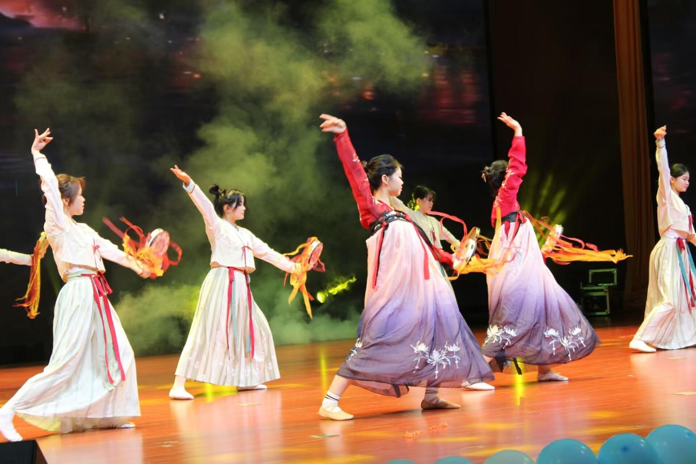 舞蹈《千年》:校舞蹈队9位同学水袖流转间以舒展韵律诠释中医药文化的悠长,将观众拉近对仁心精神的跨时空传承
