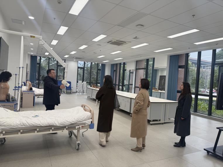 两位专家深入实训中心参观了模拟手术室、护理穿刺技能实训室等实训教学场所,详细了解实训设备的配置与使用情况,对实训中心的整体规划、设施建设及教学环境给予肯定。同时,结合自身临床经验,对护理实训中心的未来发展提出了宝贵建议。
