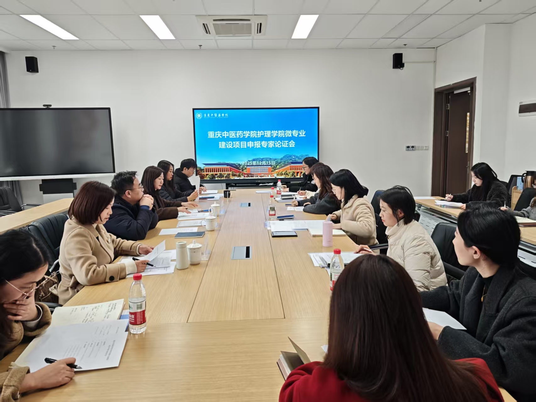 12月15日,重庆中医药学院护理学院在护理学院A1-213会议室召开微专业建设项目申报专家论证会。重庆中医药学院附属江津医院护理部主任陈小娟,附属永川医院护理部主任万小琴,护理学院党总支副书记、副院长朱峰,副院长胡琛、樊文彬,出席会议。重庆中医药学院护理学院中医老年护理微专业、中医康复护理微专业负责教师团队及各位专任教师代表参会。