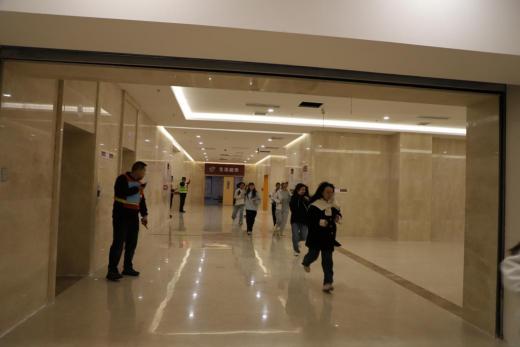 演练模拟西区宿舍5楼因洗衣机短路引发“火情”。下午16时整,火灾警报骤然响起,消防广播发布紧急疏散指令,宿舍管理员立即上报火情,疏散引导小组的辅导员与学生志愿者迅速就位,组织学生按照预定疏散路线快速、有序撤离。安全保障、医疗救护等小组协同配合,警戒、救护、灭火等环节衔接紧密。最终,全体参演师生在4分30秒内全部安全撤离至指定集结。