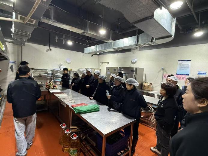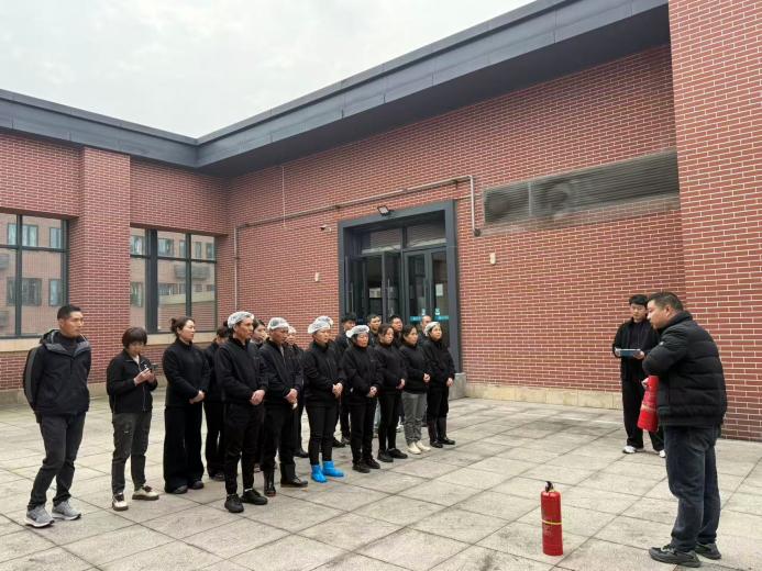 演练开始前,食堂安全主管集中讲解了火灾分类、灭火器正确操作要领及疏散逃生核心知识。随后,演练模拟了厨房油锅起火、就餐区电路短路引发火情两大高风险场景,员工们按照预案迅速响应。最后,全体人员还在指导下进行了灭火器实操轮训与考核,确保技能掌握到位。