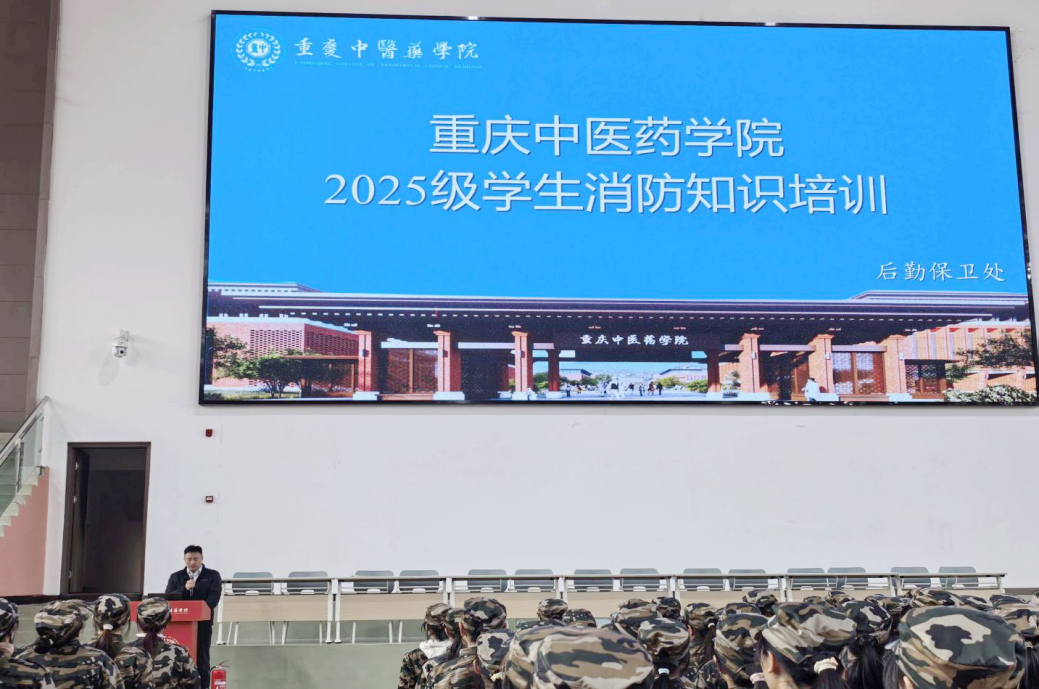 为扎实筑牢校园消防安全防线,将安全教育融入新生军训关键环节,切实提升2025级新生消防安全意识与火场自救互救能力,1月27日,重庆中医药学院后勤保卫处在体育馆组织开展了2025级新生消防安全培训与逃生演练活动,特邀利民防火中心专业教官授课指导。