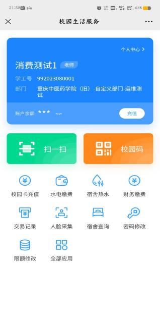 请及时关注“重庆中医药学院服务号”,选择“智慧服务”-“一卡通服务”完成校园卡绑定。校园卡绑定成功后,可用于水电缴费、食堂消费、宿舍热水、财务缴费、图书借阅等校内应用场景。校园卡应用以电子卡应用为主,实体卡应用为辅。