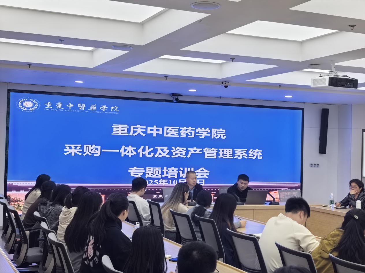 为进一步规范学校采购与资产管理工作,提升业务管理水平,保障采购及资产管理流程的高效运行,2025年10月23日,重庆中医药学院组织开展采购一体化及资产管理系统专题培训会。本次会议由计划财务处、资产与实验管理处(基建处)共同举办,王永彬处长主持,学校各部门采购与资产管理负责人及相关人员参加会议。