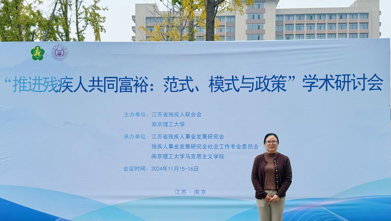 为深入贯彻落实习近平总书记关于残疾人事业的重要论述和重要指示批示精神,认真贯彻落实新时代新征程残疾人工作的目标任务和要求,深入探究中国式现代化进程中残疾人共同富裕的理论与实践,11月 15-17 日,“推进残疾人共同富裕:范式、模式与政策”学术研讨会在南京理工大学召开。我院程娟副教授参加学术研讨并进行交流发言。