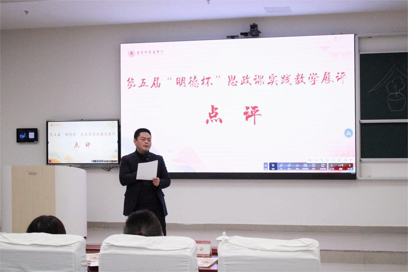2025年12月24日,由教务处主办,马克思主义学院承办第五届“明德杯”思政课实践教学展示评比活动在综合教学楼E1-104举行。党委学生工作部部长任源钢、教务处副处长李娟、党委宣传部副部长张忠伟、中医学院晋瑜霞副教授等嘉宾以及马克思主义学院全体教师出席活动。