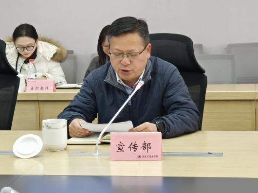 1月14日,为全面总结我校思政课建设,分析存在的问题与不足,进一步推进思政课改革创新,提升育人实效,学校在行政楼F2-401会议室召开“思政课建设推进会”。学校党委常委、纪委书记、监察专员唐樵出席会议,党委宣传部、教务处负责人,思政课全体专兼职教师参加会议。