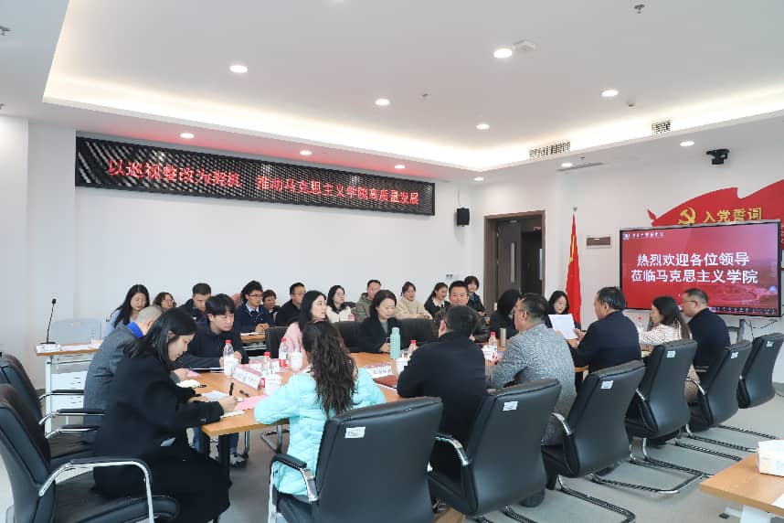 为切实解决马克思主义学院发展中的实际问题,以巡视整改为契机推动学院建设再上新台阶,3月25日下午,学院党委书记、院长王勇德,党委常委、纪委书记、监察专员唐樵率党政办公室、党委宣传部、党委教师工作部、教务处、科研处、计划财务处、资产与实验管理处等部门负责人,深入马克思主义学院开展专题调研。马克思主义学院全体教师参加座谈。