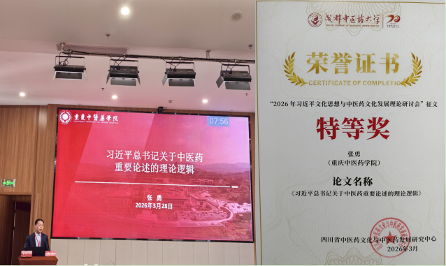 3月27日至29日,“2026年习近平文化思想与中医药文化发展理论研讨会”在成都中医药大学召开。本次会议由四川省哲学社会科学重点研究基地“中医药文化与中药发展研究中心”、成都中医药大学马克思主义学院联合主办。来自全国60多所高校及科研院所的专家学者及师生代表200余人参会。我院副院长王文文研究员、张勇博士参加此次会议。