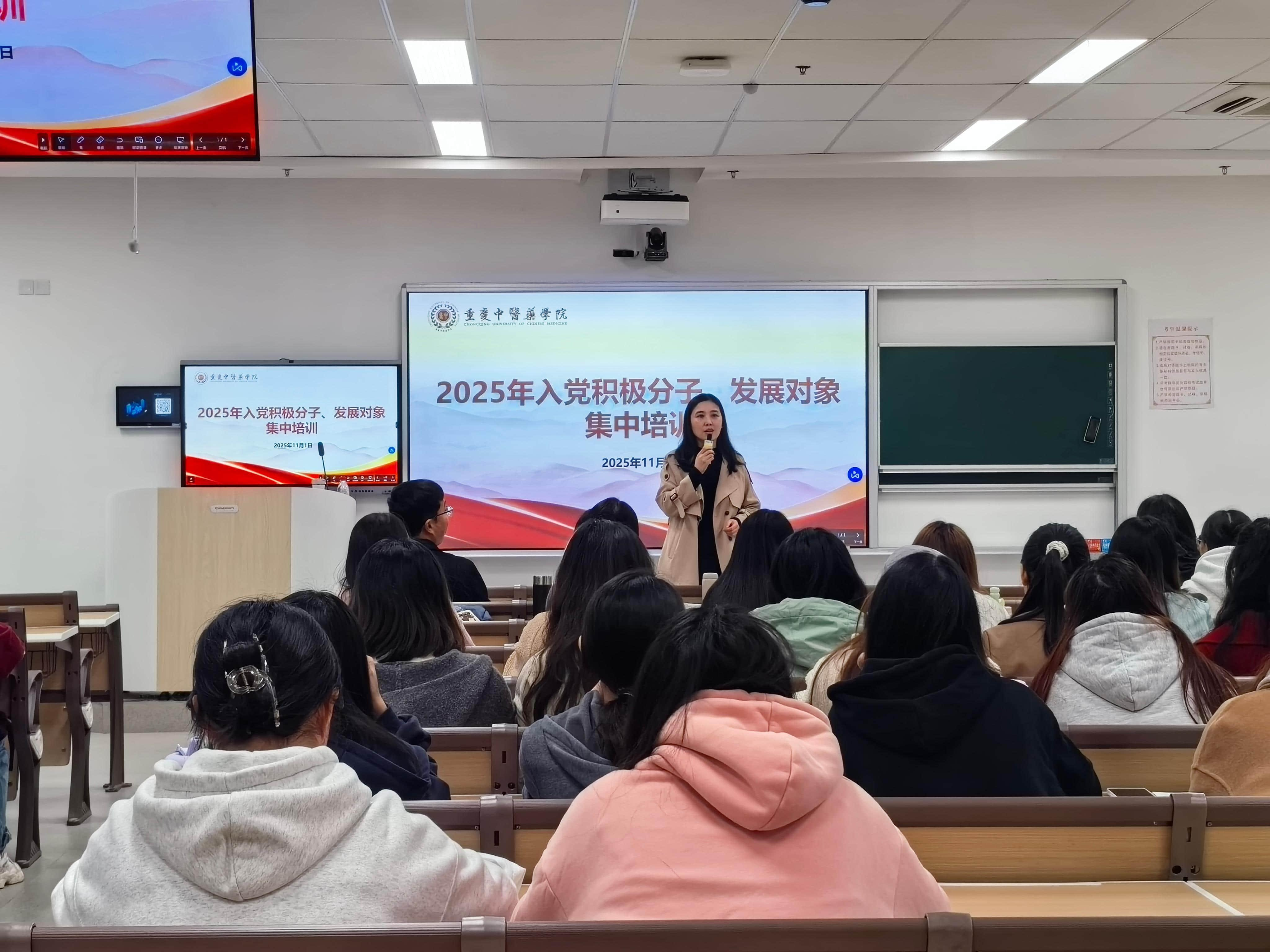 2025年11月1日,马克思主义学院专职组织员杨成凤老师为学校2025年入党积极分子、发展对象作了主题为“新时代中国共产党的创新理论和方针政策”的培训。授课内容以党的十八大、十九大、十九届六中全会《决议》、二十...