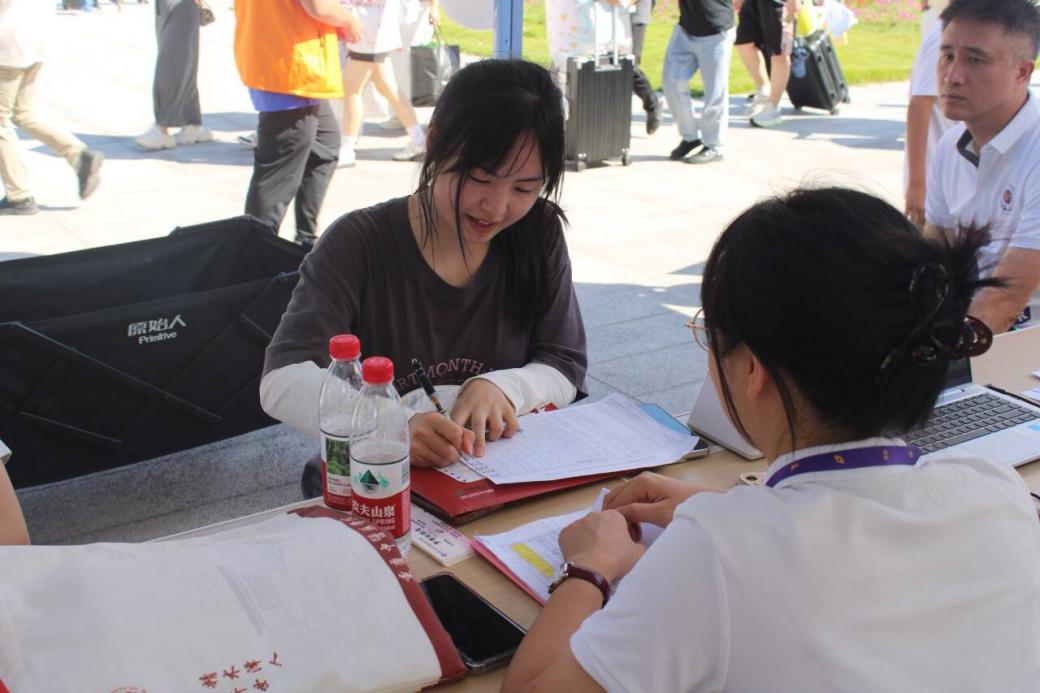 10月8日早上7点,迎新工作正式启动。为营造“如家般温暖”的入学体验,学院不仅设置了清晰便捷的报到流程,更在细节中融入浓浓关怀:备有解暑饮用水、贴心小零食和精美的学院文创礼品。