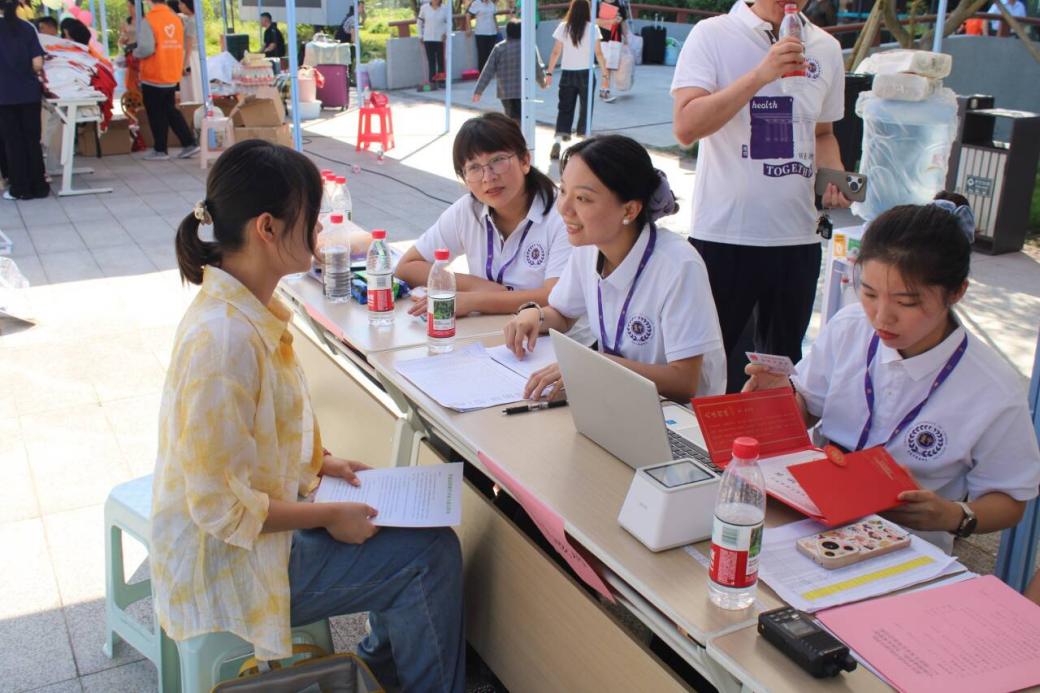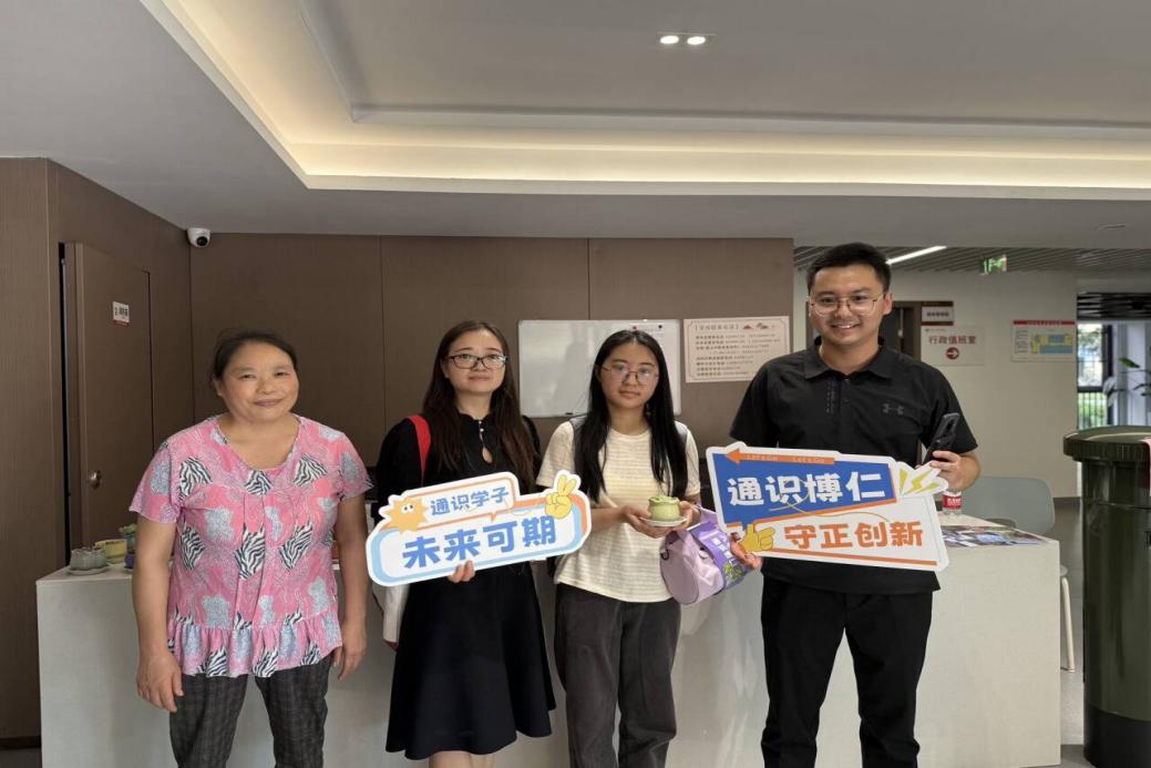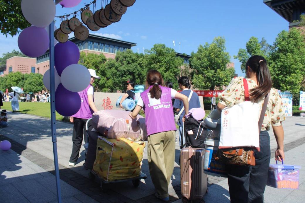 报到现场,从身份核验到伴手礼发放,各环节衔接顺畅、有条不紊。身着紫色服装的志愿者活跃在校园各处,拉横幅、搭帐篷、搬运行李、举牌引导,成为校园中最亮丽的风景线。“同学你好,请往这边!”“家长请放心,行李交给我!”一声声温暖的问候,一次次主动的帮助,迅速拉近了彼此距离,也让初入校园的新生与家长感受到通识学院的第一份温暖。