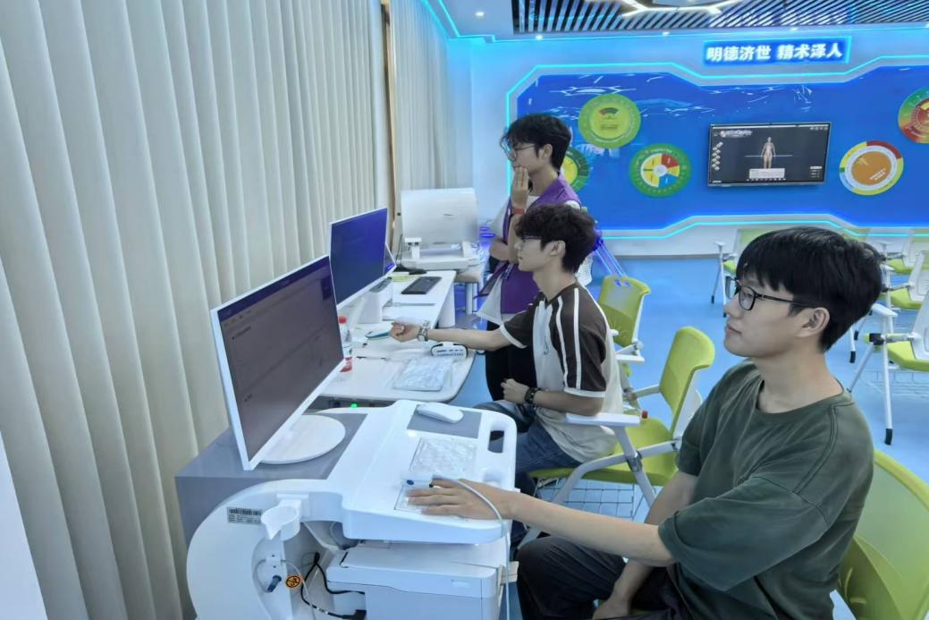 为帮助新生直观感受专业魅力,健康服务与管理专业负责人吴婷婷老师于当日下午带领新生参观了实验实训室。在吴老师与志愿者的细致讲解和示范下,同学们亲身体验了健康管理一体机、骨密度检测仪、动脉硬化检测仪等现代化设备。科技与医学的深度融合令新生倍感新奇与震撼,大家纷纷上前操作。这堂生动的“开学第一课”将抽象知识变得可触可感,成功点燃了同学们探索未来专业领域的浓厚兴趣。