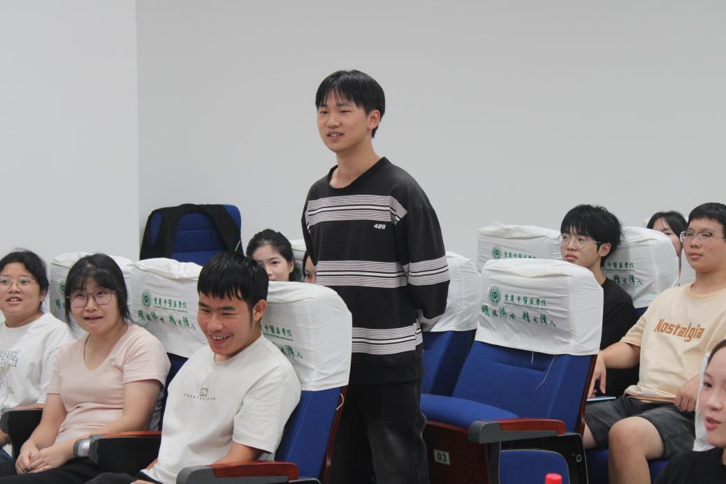 作为学长,2024级的老生代表冯奕鑫对“新鲜血液”的注入表示了最热烈的欢迎。他以一名“过来人”的身份,分享了走出迷茫的心得:“在大学,最重要的转变是从‘被动接受’到‘主动探索’。”他据此提出建议:“要敢于走进图书馆,徜徉书海;要勇于参加社团和实践项目,锻炼综合能力”。