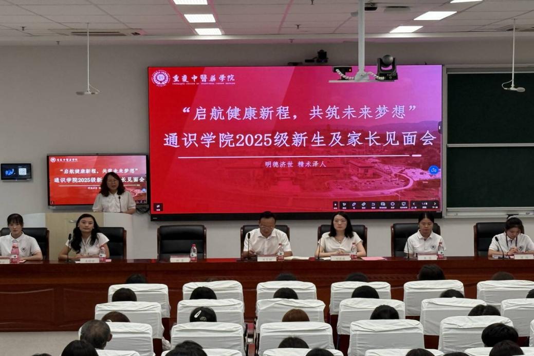 当日下午,学院在图书馆一楼报告厅(E1-104)隆重举行了2025级新生及家长见面会。重庆中医药学院副校长朱吉彬,通识学院党总支副书记、副院长(主持工作)刘薇薇,副院长师萱及教职工代表出席,会议由师萱副院长主持。
