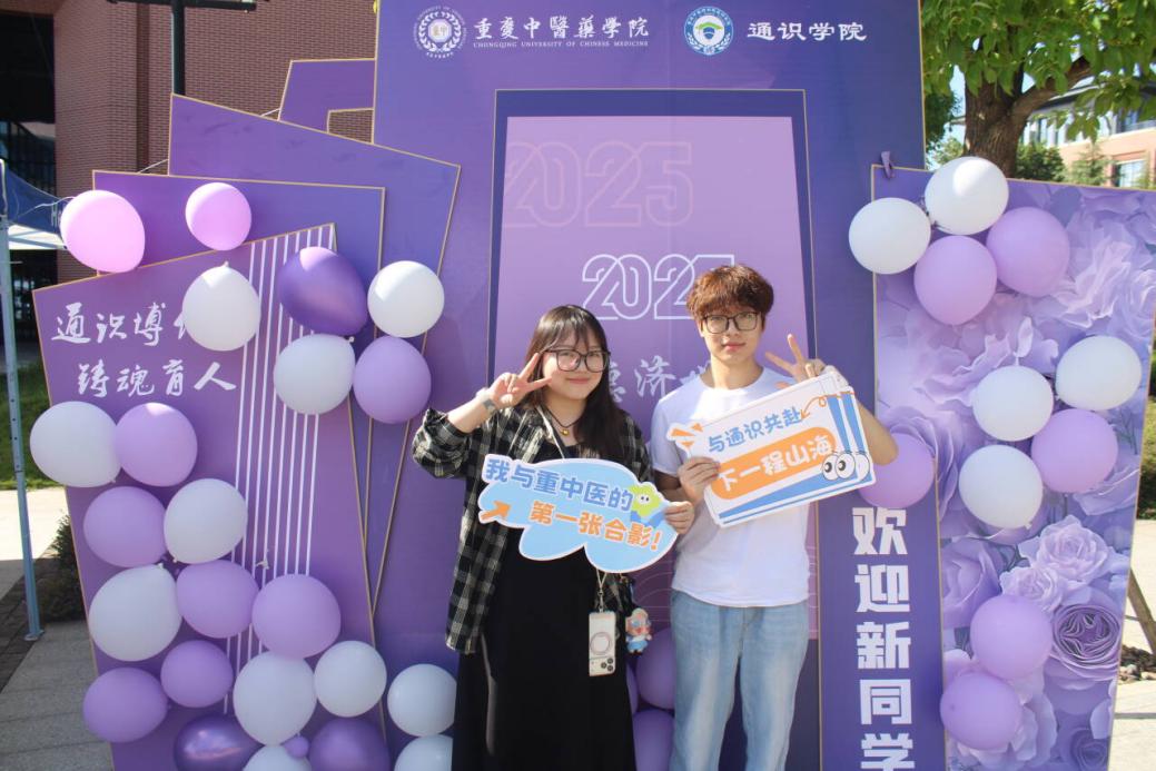 同学们在完成报到后,纷纷在专属签名木牌上郑重留下姓名,并在学院精心布置的打卡点合影留念。木牌上的笔迹是青春的印记,照片中的笑脸是梦想的起点,这一刻,新生与重庆中医药学院通识学院的故事,正式落笔启程。