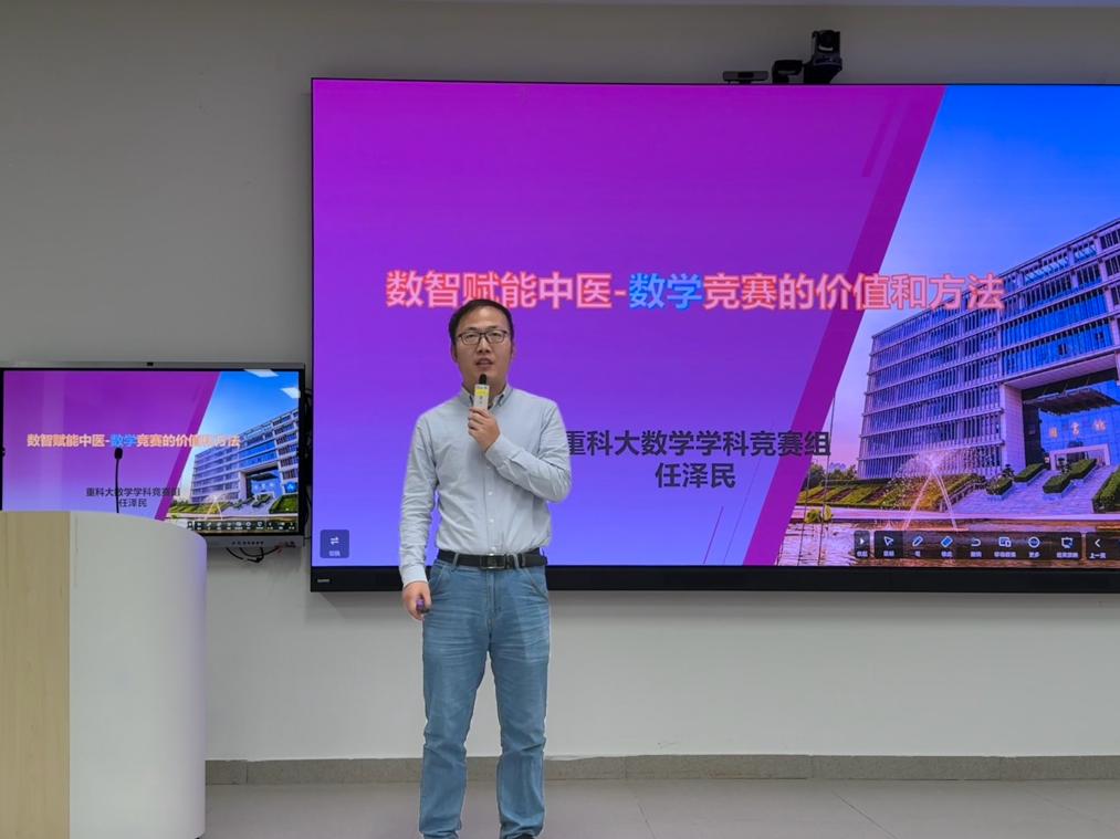 在“数智赋能中医——数学竞赛的价值与方法”的专题讲座中,任泽民教授以深厚的学识和生动的语言,以“数学,竟在如此浩瀚高深的知识领域中,展现其磅礴伟力,令我唯有望之兴叹”一句话为引,点明数学的伟大与人文意义。随后,任教授从多个角度阐述了中医药学生学习数学的重要性。他指出,数学不仅是“科学的皇后”、研究之基,更是“思维的体操”,能有效提升逻辑与创新能力。他结合中医药专业的特性,分析了中医药学生在逻辑思维、整体观念、模式识别等方面的独特优势,鼓励大家将数学思维融入辨证论治、方剂配伍等环节,体会数学与中医相融的智慧之美。此外,他还系统讲解了数学竞赛的类别与特点,并分享备赛策略与方法,鼓励同学们以竞赛为契机,激发潜能、拓宽视野。
