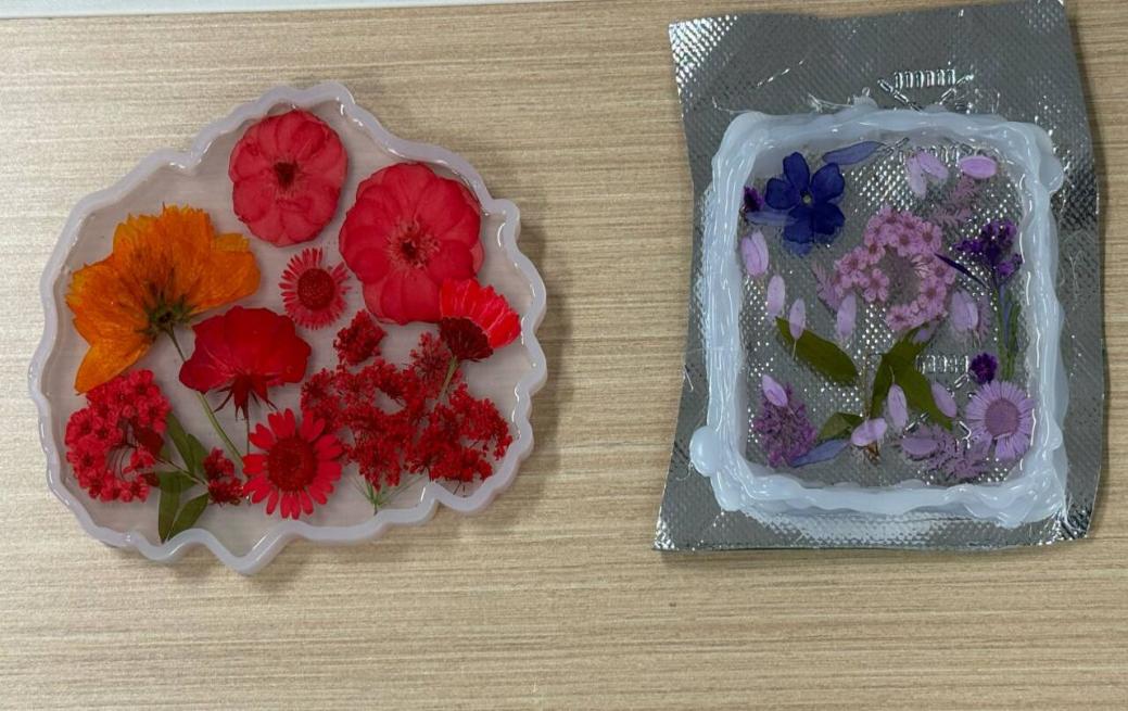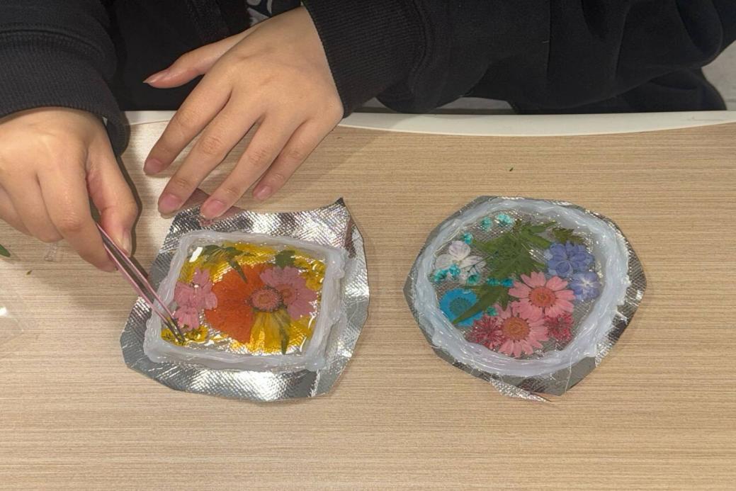 活动于当晚19点30分在学院C2-102教室准时开始。学院提前筹备,为同学们免费提供全套制作材料,并安排专人指导技巧。在轻松愉快的氛围中,同学们纷纷发挥创意,将象征着永恒与美好的永生花精心镶嵌在杯垫之中。每一件独一无二的作品,都凝聚着对女教师的深情厚谊。