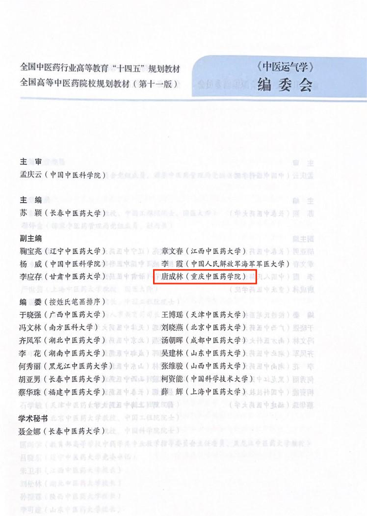我院唐成林教授作为副主编参与编著的全国中医药行业高等教育 “十四五”规划教材《中医运气学》正式出版