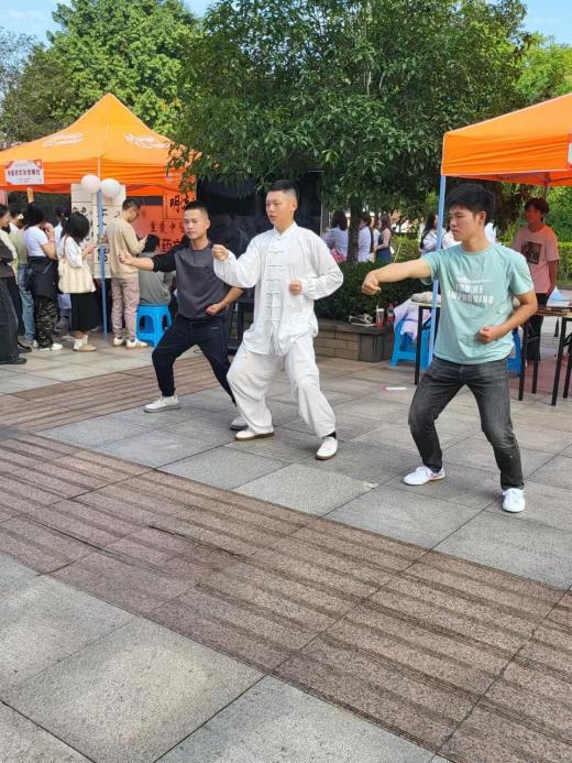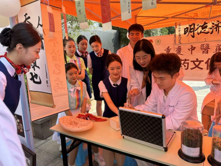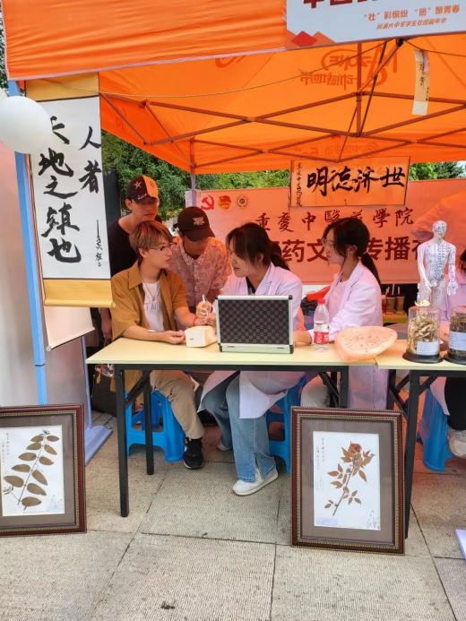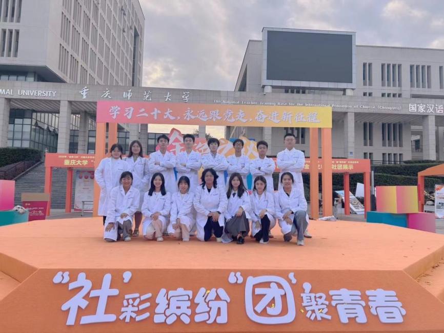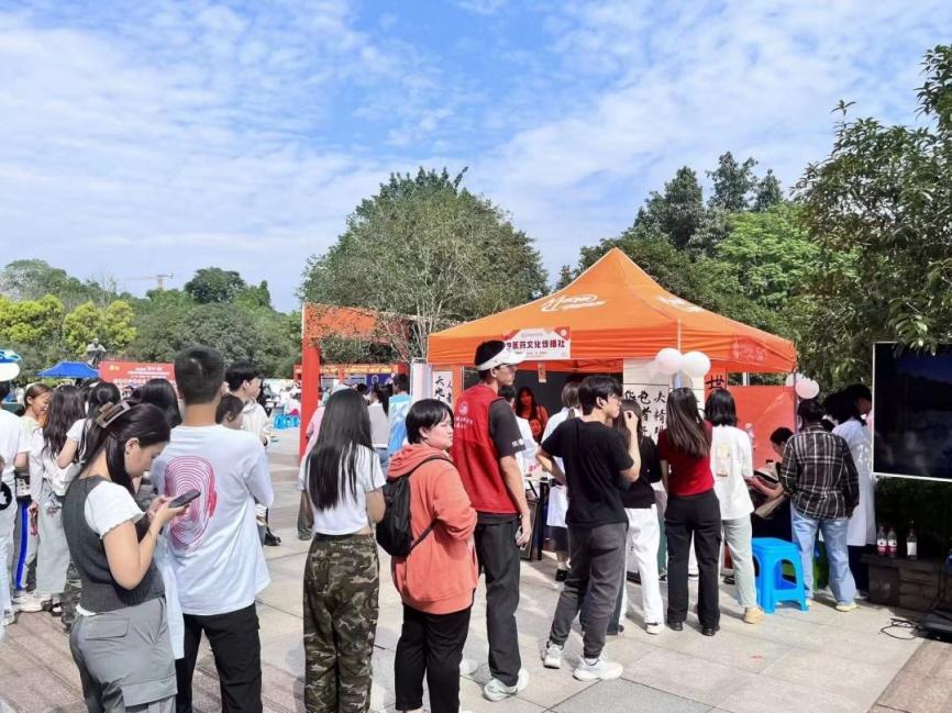 10月15日,2023年“金色之秋”川渝大中专学生社团文化节开幕式暨“‘社’彩缤纷‘团’聚青春”社团嘉年华在重庆师范大学举行,我校中医药文化传播社作为“社龄”最小的一支志愿公益类社团参加了本次活动,受到了活动现场广大同学的热烈欢迎,成功“出圈”。