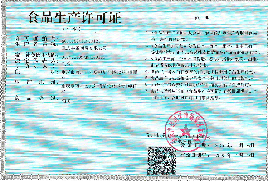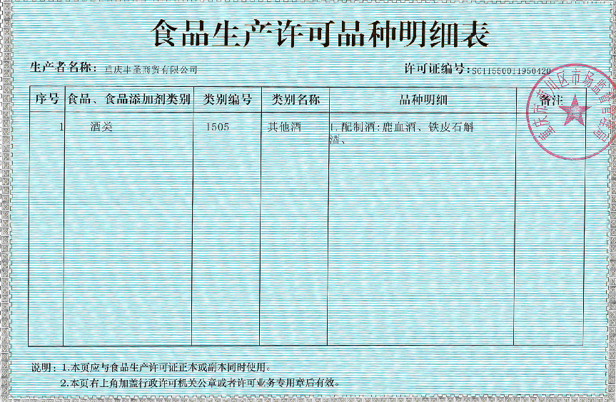 铁皮石斛酱香酒、鹿血酱香酒获得生产许可,标志着其“试制”身份结束。目前,重庆丰圣商贸有限公司已正式启动生产,前期已完成基酒原料采购等准备工作,预计将在春节前生产一批产品供应市场。