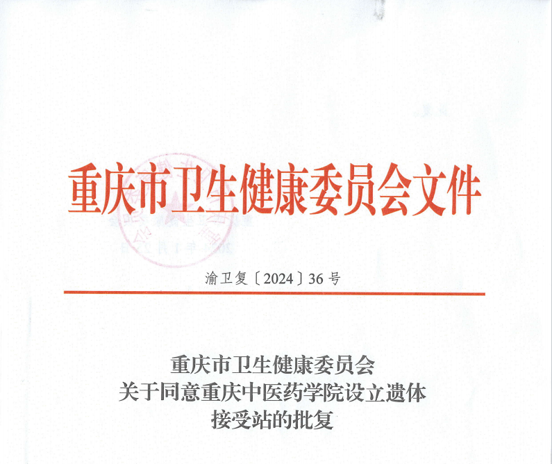 近日,我院提交的《设立遗体接收站的请示》得到重庆市卫生健康委员会正式批复,同意我院设立遗体接收站。