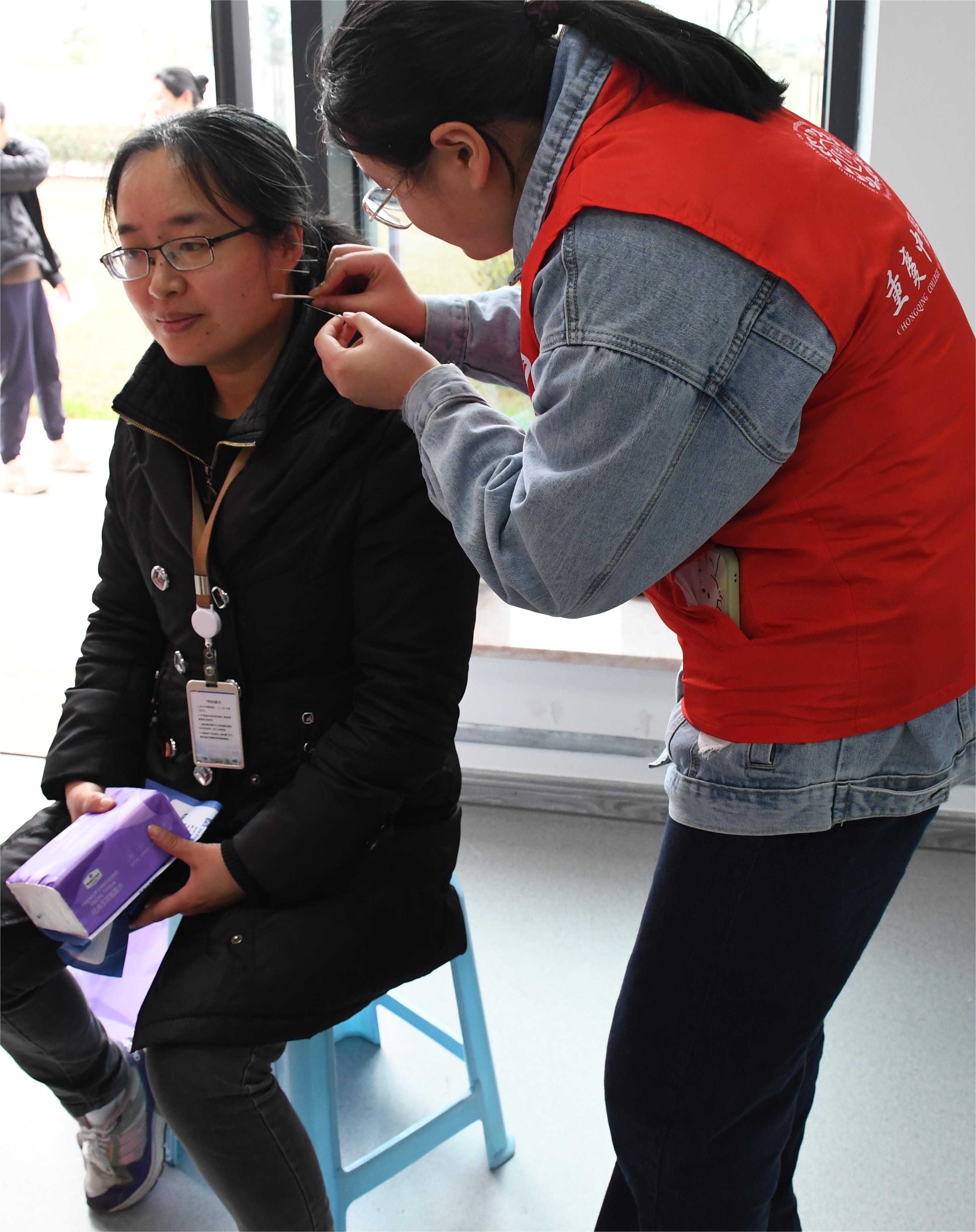 3月5日,当重庆中医药学院中医专家义诊团到达西南技术工程研究所义诊活动现场时,便看见长长的排队人群。张女士就排在队伍的前面,为她接诊的医生是重庆中医药学院针灸推拿学院的兰医生,通过面诊、脉诊、手诊、针灸、按摩等一系列操作下来,张女士明显感觉自己身体不适的症状缓解了许多。她开心的说:“这样的义诊活动太有意义了,为职工和家属提供了方便,也让我对中医有了全新的认识。”离开时,张女士还特意向兰医生索要了平时坐诊医院的地址,并表示会在近期前往医院找兰医生进行更详细的诊断治疗。