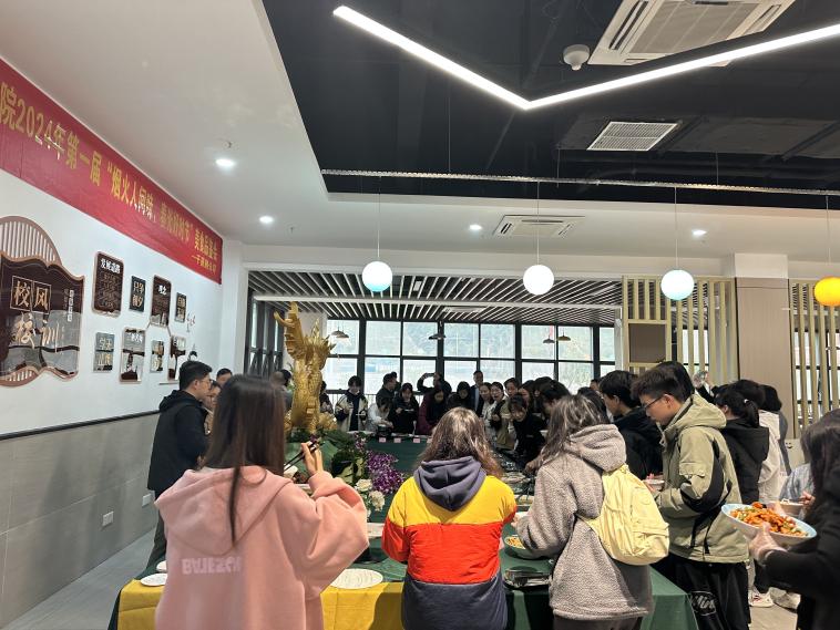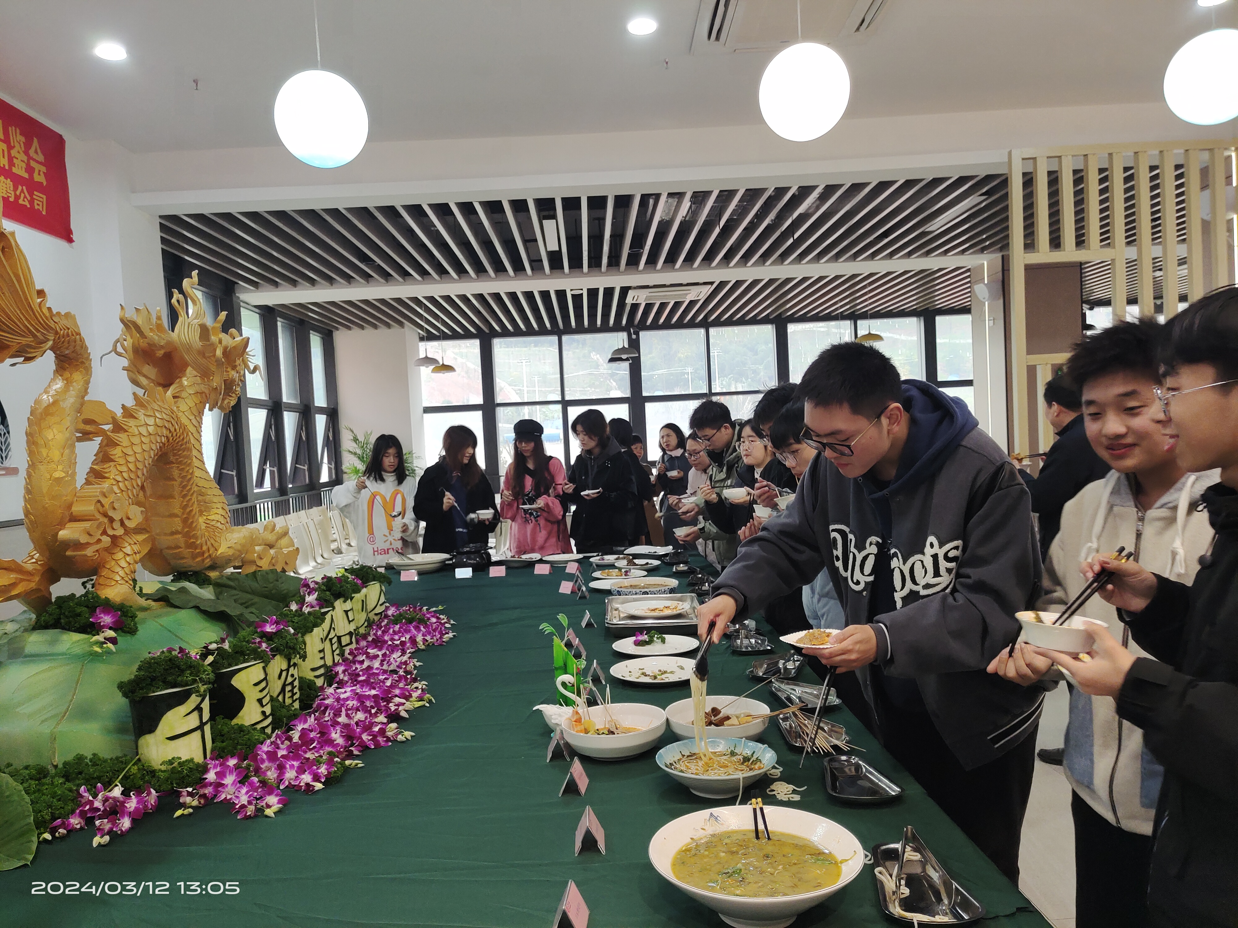 3月12日,我院美食品鉴会在食堂二楼“浓香”开启,一道道美食陆续上桌,精致可口的糕点、麻辣鲜香的碗碗菜、香气诱人的特色小吃、健康养生的药膳汤……各类美食琳琅满目,近100名师生现场打卡,赞不绝口。
