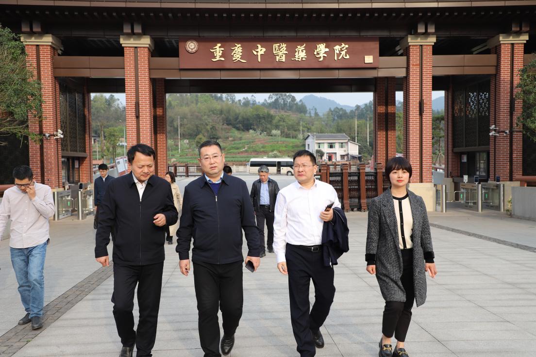 王勇德向王金涛一行介绍了我院的建设历程、发展规划等情况并陪同参观了我院中医药文化馆、基础医学院。参观中,王金涛进一步了解了我院师资配备、教学工作、设备配置等情况,他说,重庆中医药学院起步虽晚,但历史积淀深厚,师资力量强大,优势突出,发展前景广阔,将在推动重庆中医药行业振兴发展上发挥重要作用。