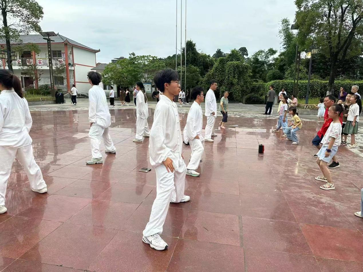 黄昏时分,夕阳西下,在大顺镇广场上,实践队成员们带领村民们一起体验拥有800多年历史的传统健身功法——八段锦。实践队成员们身着太极服,动作轻柔舒展,举手投足间尽展八段锦的魅力;伴随着优美的音乐口诀,队员们将每一个动作步法、手形进行分解,现场教学,让村民们逐步掌握动作要领。这场“八段锦”进广场活动,在给当地群众带去健康之余,还促进他们对中华传统瑰宝有了进一步的认识、了解,让中华传统养生文化得到更好地传承。