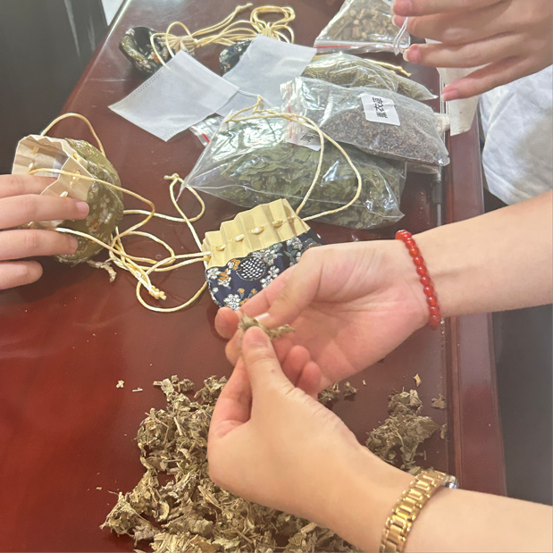 在“巧手做香囊,传统文化进社区”的精彩宣讲活动中,实践团成员们不仅细致地讲解了中药香囊的历史来源、原理功效以及制作方式,还与热情的村民们一起动手制作。实践团成员的专业与爱心受到了当地村民的高度评价。