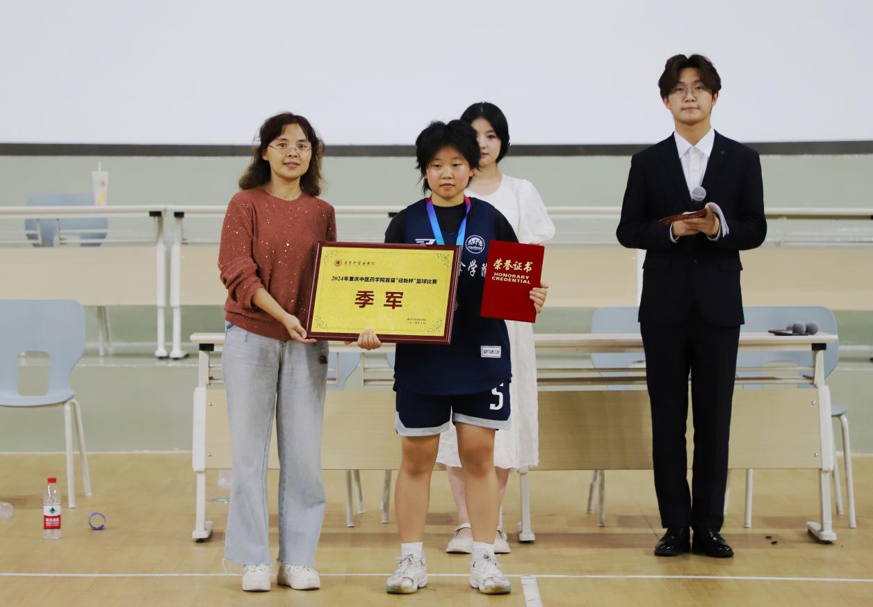 ▲教务处处长宗晓琴为女子组亚军——中药学院女子篮球队颁奖