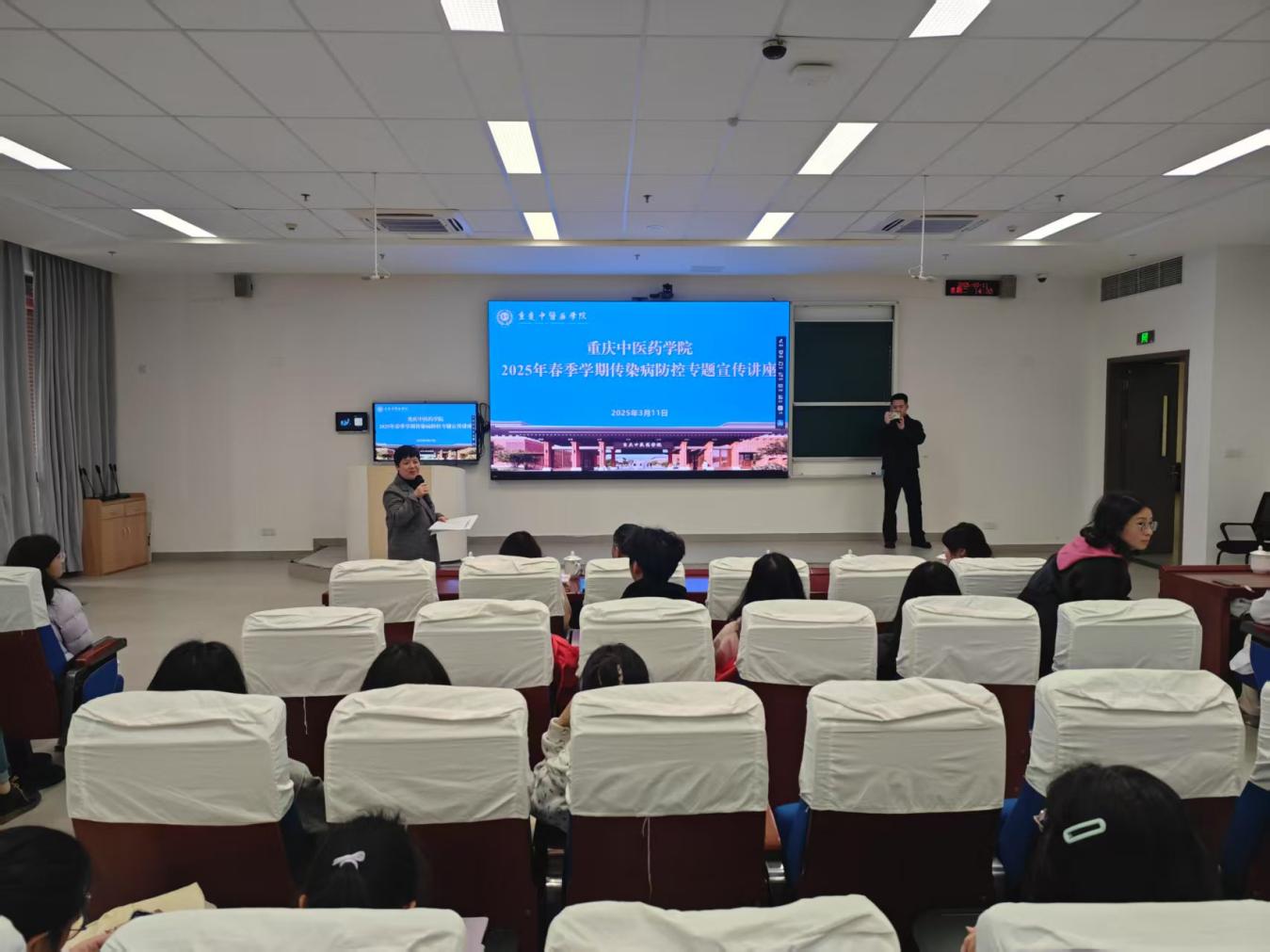 为进一步加强校园传染病防控工作,提升师生健康防护意识,3月11日,我院后勤保卫处联合学生社团中医药健康管理社共同举办了学院2025年春季学期传染病防控专题讲座,讲座内容丰富,吸引了150余名教师和学生现场听讲。