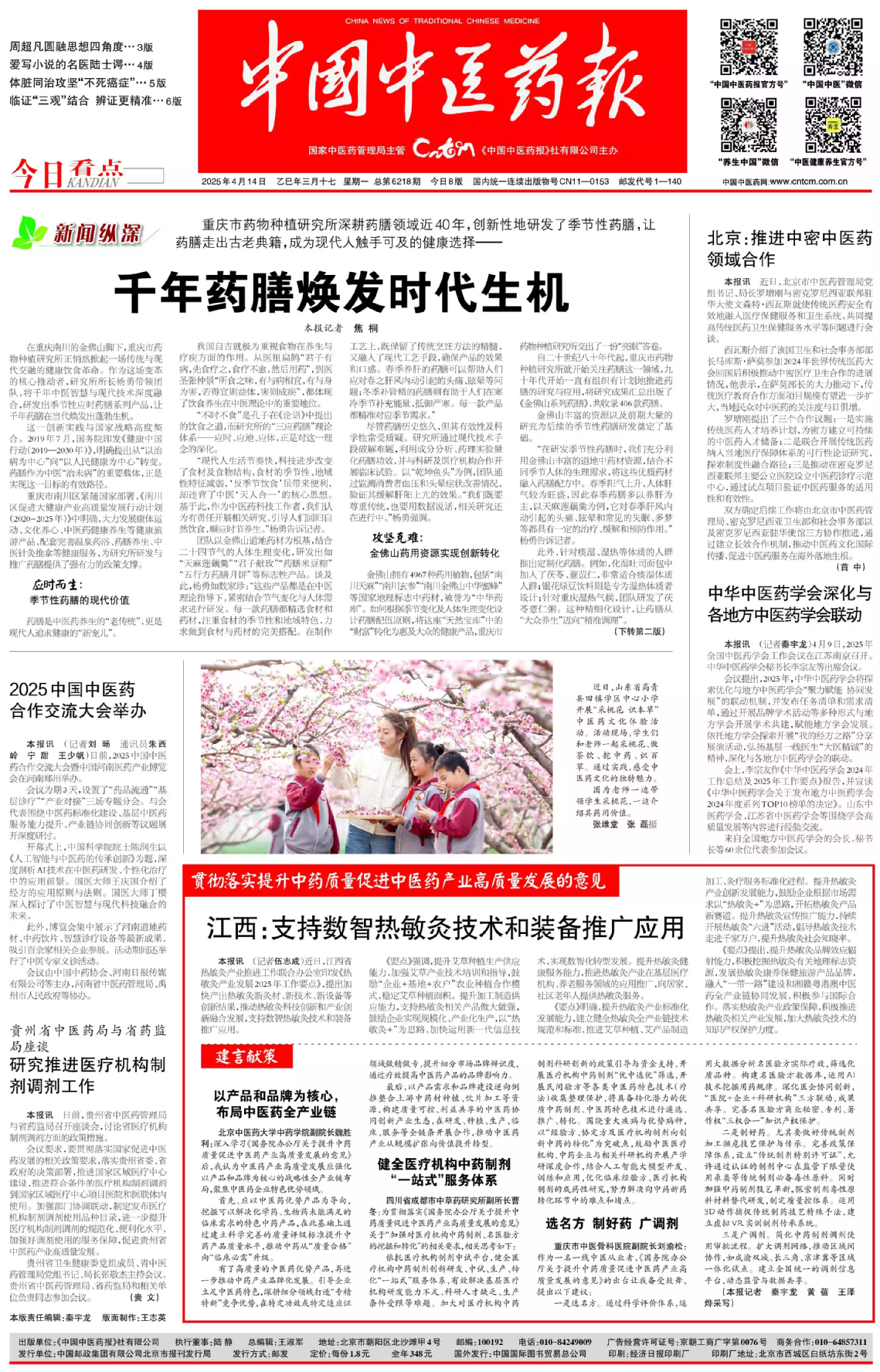“现代人生活节奏快,科技进步改变了食材及食物结构,食材的季节性、地域性特征减弱,‘反季节饮食’虽带来便利,却违背了中医‘天人合一’的核心思想。基于此,作为中医药科技工作者,我们认为有责任开展相关研究,引导人们回归自然饮食,顺应时节养生。”杨勇告诉记者。