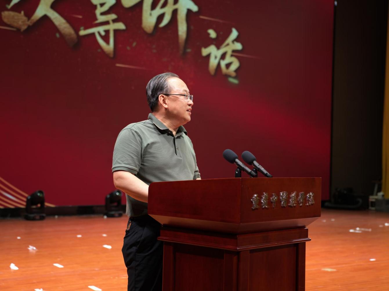 我院副院长林治华,各部门、二级学院相关负责人,宗筋堂(重庆)医药科技有限公司董事长张元刚,以及全校师生代表出席活动。