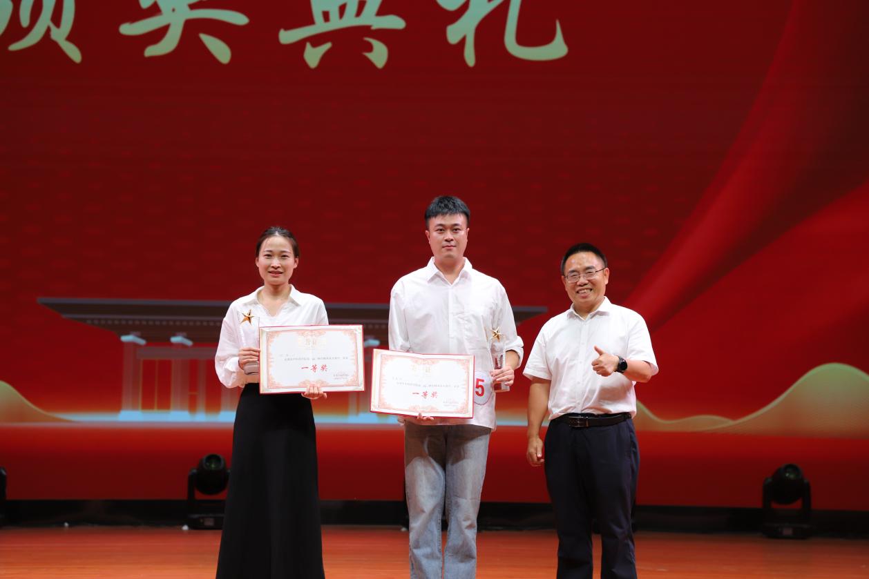 ▲我院党委副书记潘传波为一等奖获得者颁奖