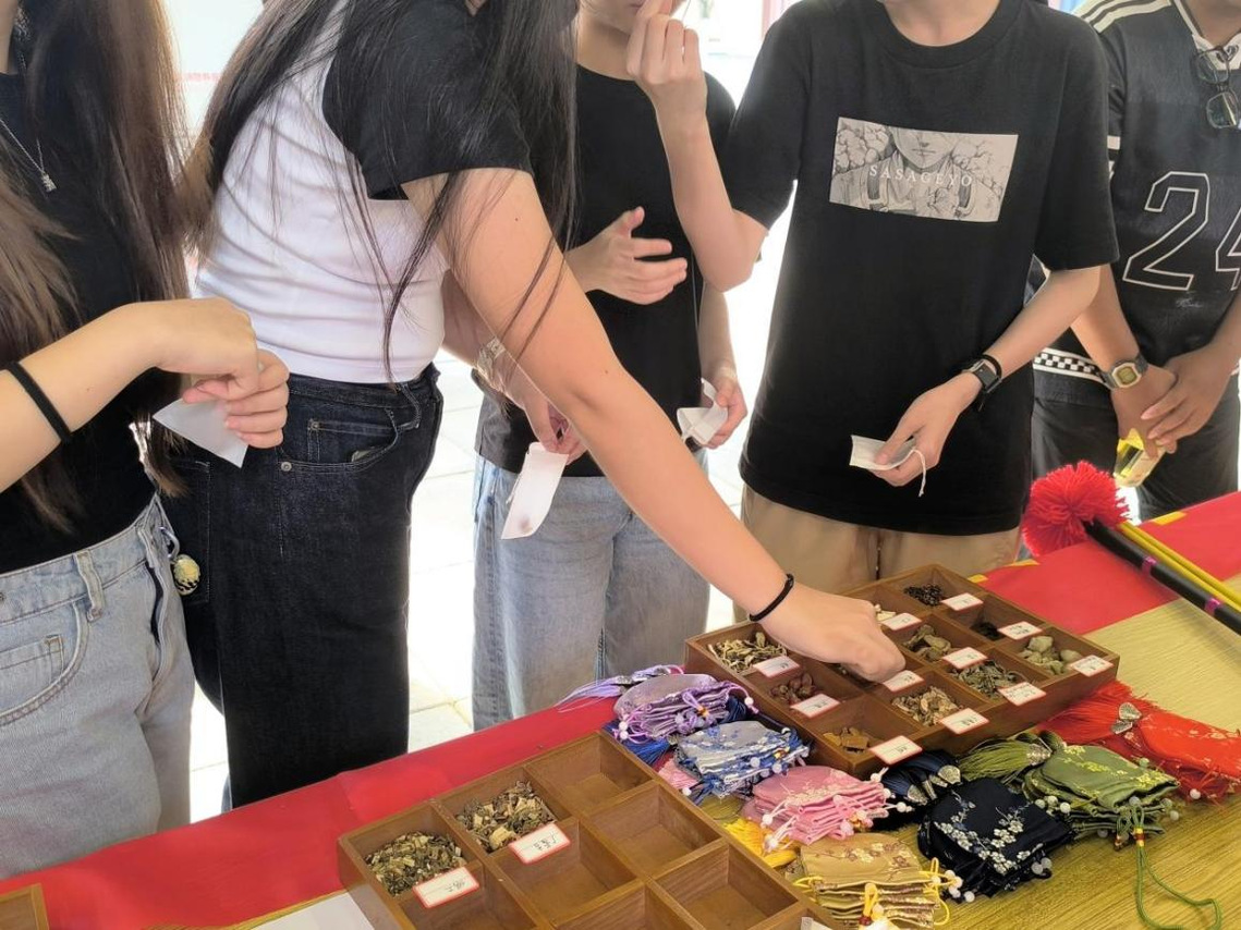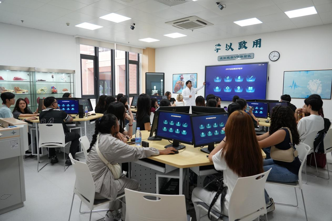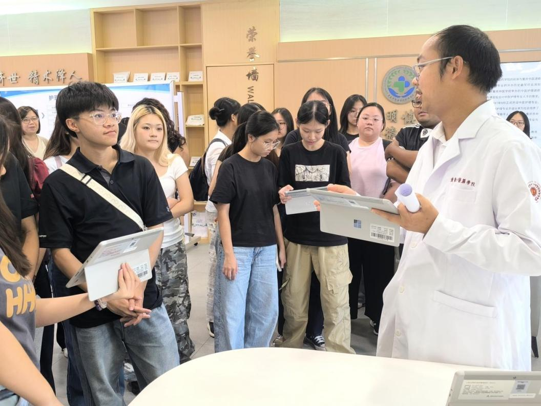 代表团参观了我院基础医学院数字化解剖实验室、护理学院护理实训中心、中药资源展厅、中医药文化馆,还现场参与了我院学生社团开展的香囊制作、扎染、漆扇制作等社团活动,沉浸式体验中医药文化魅力。