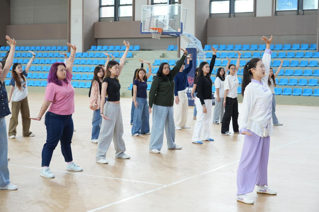 代表团参观了学院基础医学院数字化解剖实验室、中医药文化馆、中药资源及产品展示中心及护理学院专项技能实训室,亲身体验了中医传统养生功法——八段锦,积极参与中医药特色糕点、漆扇、艾草锤制作等中医药主题社团活动,在一系列妙趣横生的互动中,切身感受了中医药文化的魅力。